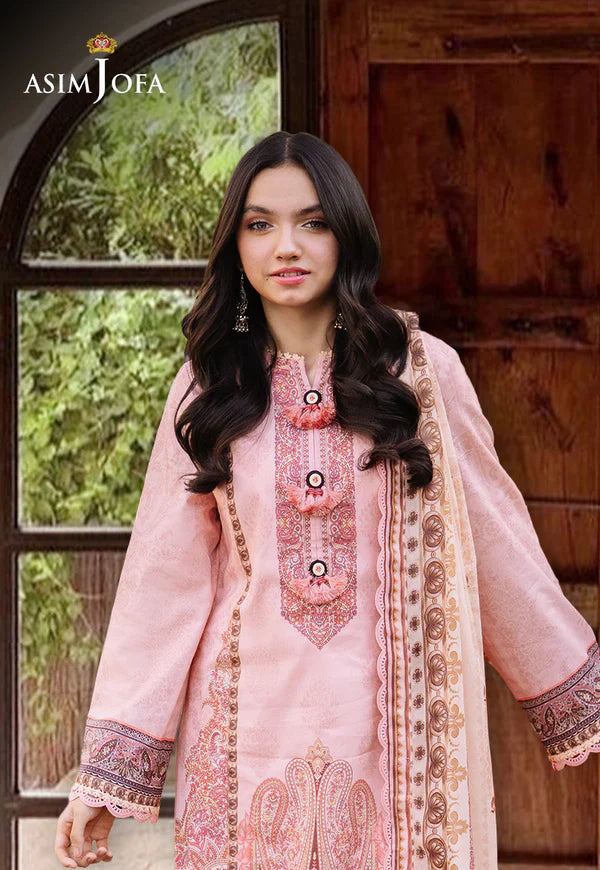 Step into the soft glow of dawn with this blush pink ensemble from Asim Jofa’s Basic Print Collection. The lawn shirt is adorned with intricate red and white prints captures the delicate artistry of bustling bazaars. The matching dupatta is a whisper of elegance which flows like the gentle breeze of early morning carrying with it the tales of ancient alleys where style and grace are forever entwined.