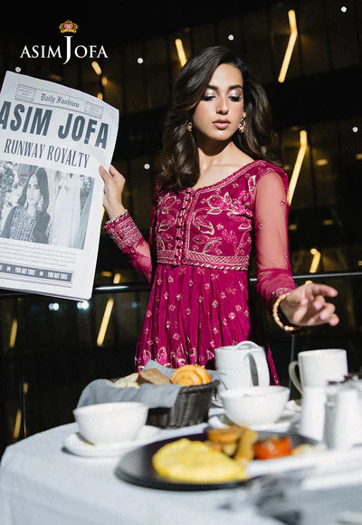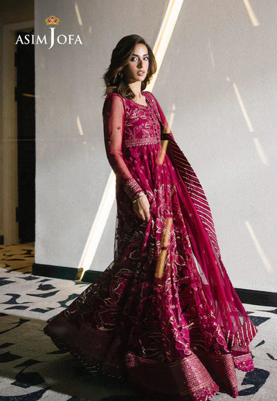 A celebration of vivid hues and intricate artistry, this fuchsia peshwas radiates vibrant energy. Adorned with shimmering 5mm fuchsia glitter sequins, it sparkles like a cascade of precious jewels under the light. Intricate fuchsia threadwork blends harmoniously with gold zari embroidery, creating a mesmerizing tapestry of texture and detail. The flowing silhouette exudes grace, while the embroidered dupatta adds an air of timeless elegance. This ensemble is designed for those who embrace their inner diva, commanding attention and admiration at every celebration. A true masterpiece for the modern muse with a flair for the extraordinary.