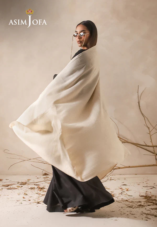 Soft and refined, the off-white shawl brings a subtle elegance, offering a versatile layer that complements both vibrant and neutral outfits.