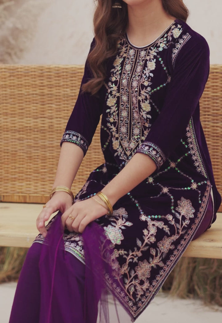 AJKV-08 EMBROIDERED VELVET 3 PCS