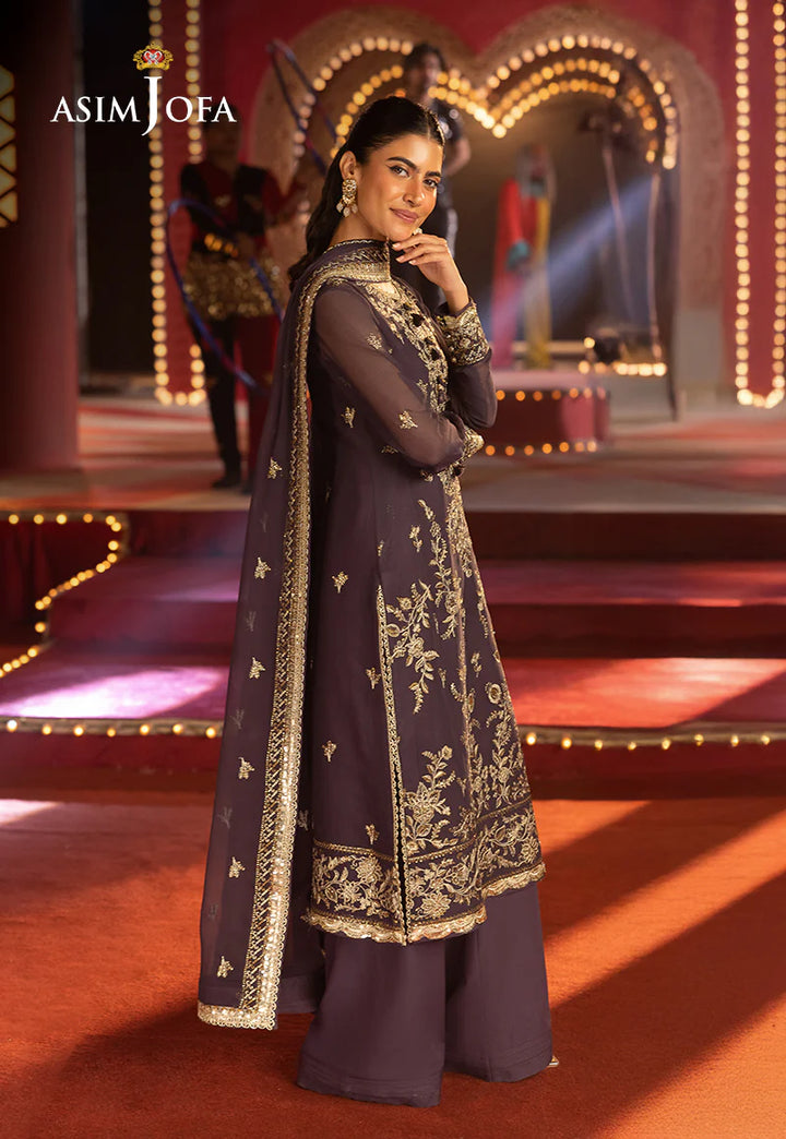 This mesmerizing purple ensemble celebrates the hues of a twilight sky. The shirt, a testament to exquisite artistry, features a symphony of embroidery, with copper zari and gold sequins illuminating a delicately designed neckline and floral front. Intricate embroidery cascades along the sleeves and borders, culminating in a refined finish. Accompanied by a masterfully embroidered dupatta, this ensemble radiates an undeniable sophistication, perfect for celebrating life's most joyous occasions.