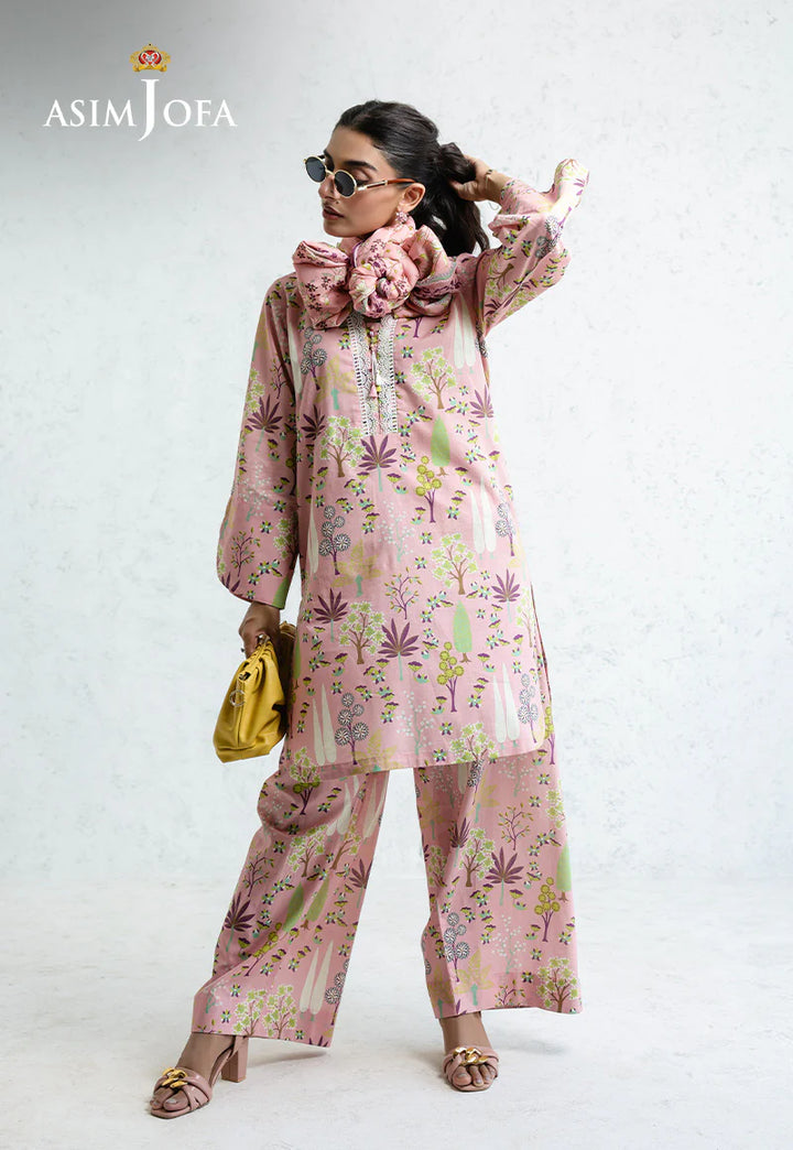 Feminine and fresh, this pink ensemble brings a garden to life. The shirt features delicate floral and botanical prints with lace detailing at the neckline, paired with coordinating printed trousers and a printed dupatta, perfect for adding charm to any sunny outing.