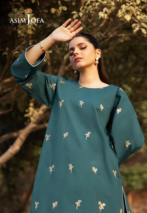 Step into timeless elegance with this green outfit. Both the shirt and trousers are adorned with delicately embroidered floral motifs, gracefully dispersed across the fabric. This ensemble beautifully combines sophistication with artistic charm, making it an ideal choice for any occasion.