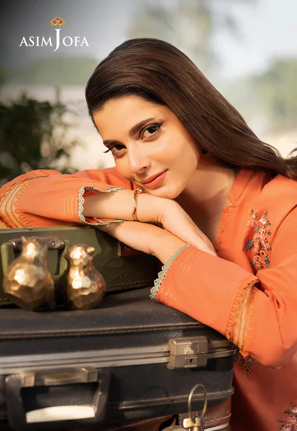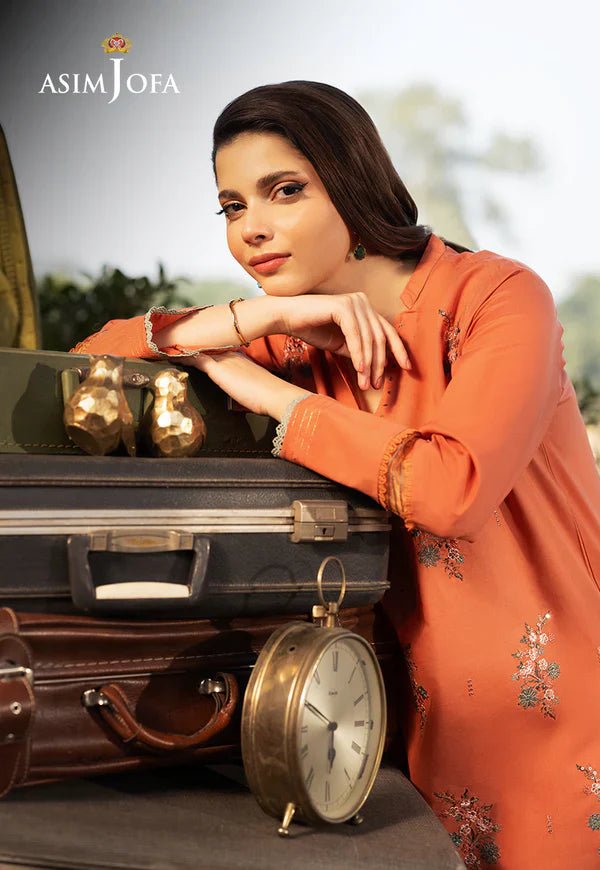 Brighten your wardrobe with this stunning orange ensemble. The shirt is gracefully adorned with intricate embroidered motifs, adding depth and charm to its vibrant hue. Paired with plain trousers, this outfit strikes the perfect balance between elegance and simplicity.