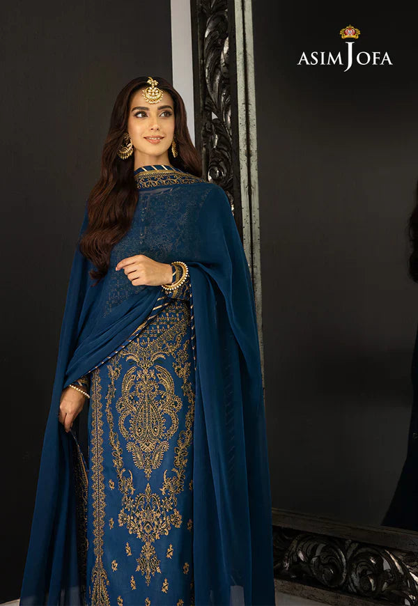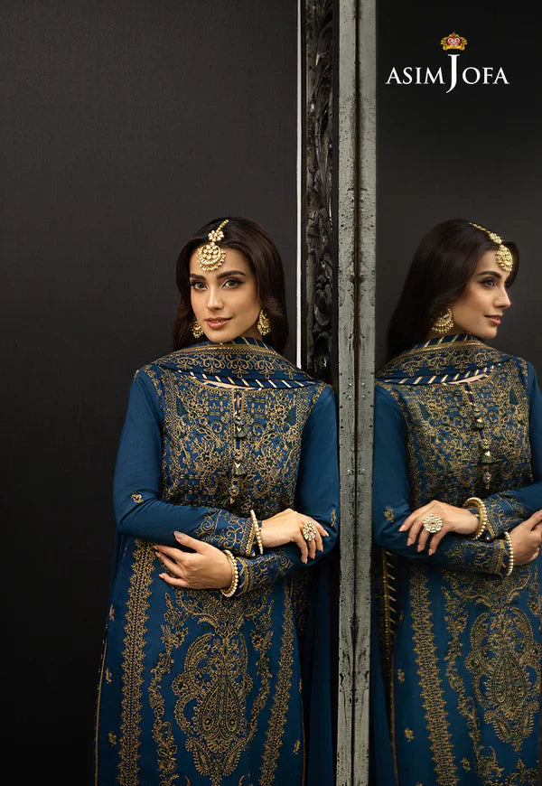 Add an undeniable sense of sophistication to your look by adorning this teal number, making it the ideal choice to kick off the celebrations in good spirits. This gorgeous outfit is made in aari-taanka with gold zari and lorex with deep green thread. It’s a piece you shouldn’t miss.