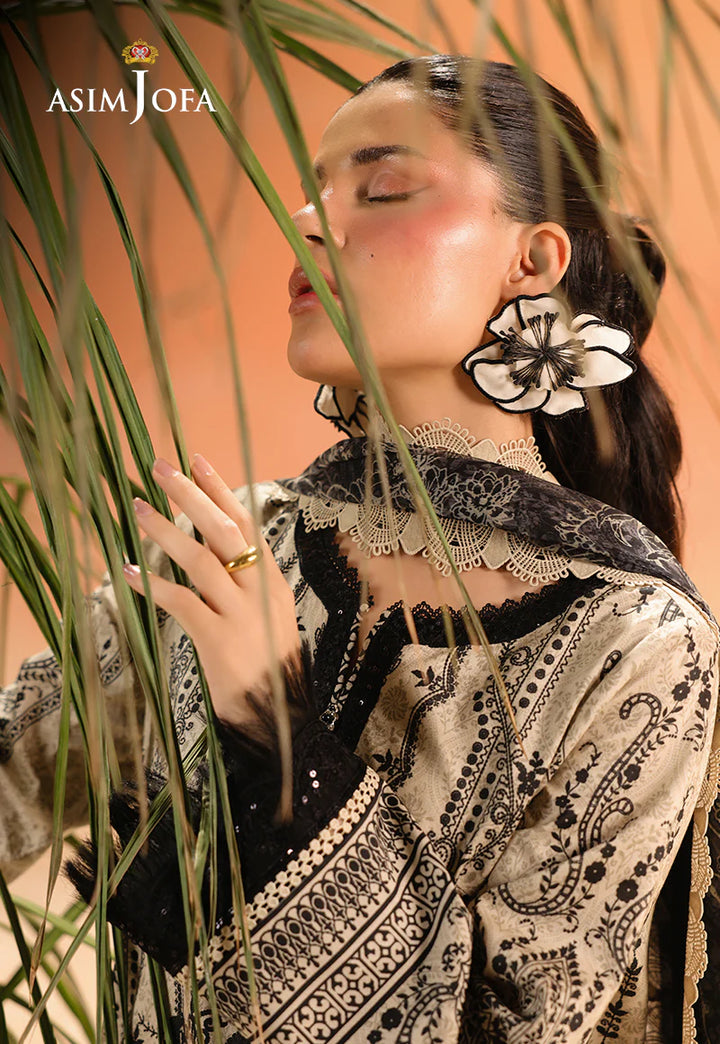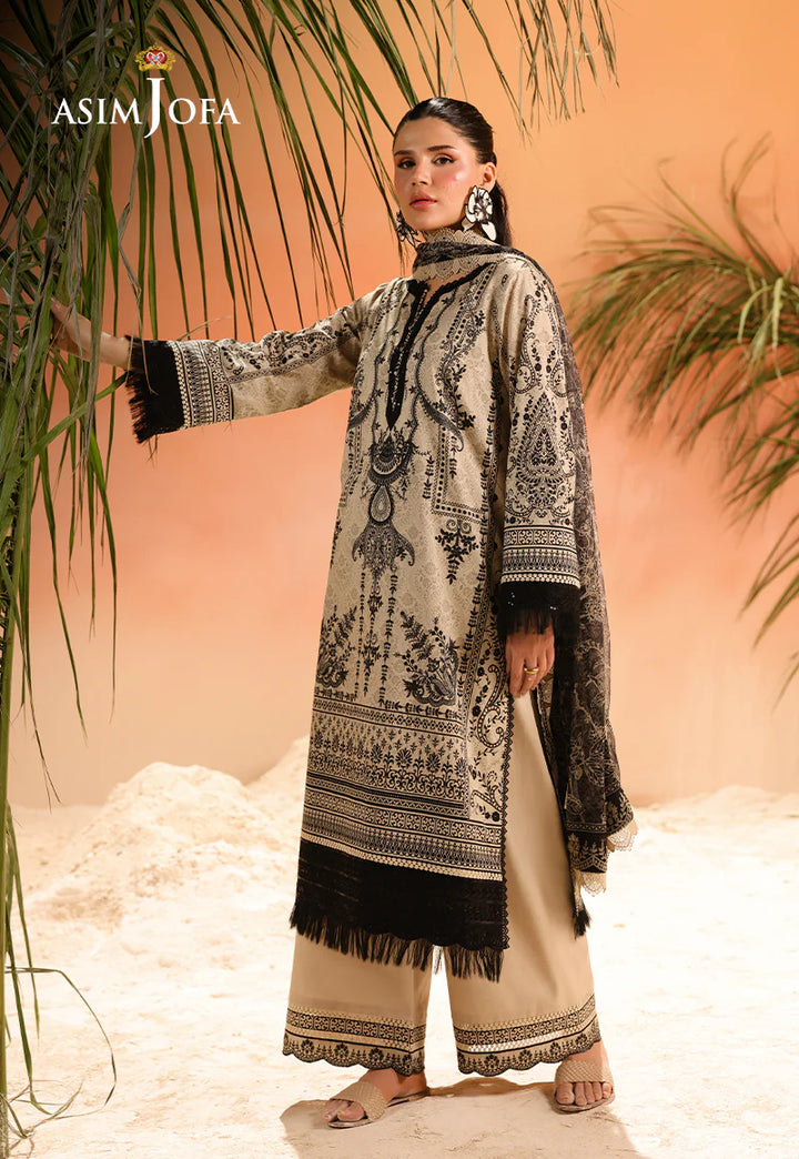 Evoking the calm of sunlit stone and shadowed lace, this beige ensemble plays with contrasts in black and grey. The neckline and border are touched with thread and sequin embroidery, glistening like dew on cobblestones. A printed chiffon dupatta completes the look with airy grace.