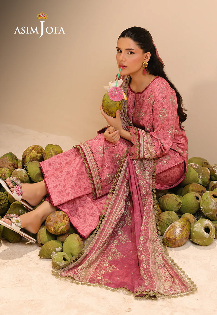 Like a pastel garden in full bloom, this pink ensemble radiates freshness with its floral print. The shirt speaks of springtime charm, the printed trousers provide a coherent look and the printed dupatta, like a trailing vine in motion, adds a graceful finish to this carefree and captivating look.