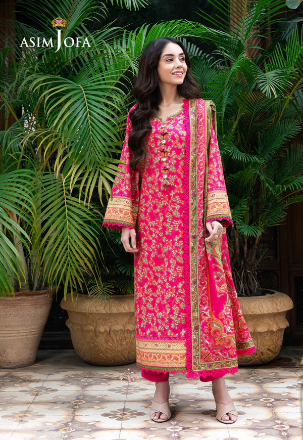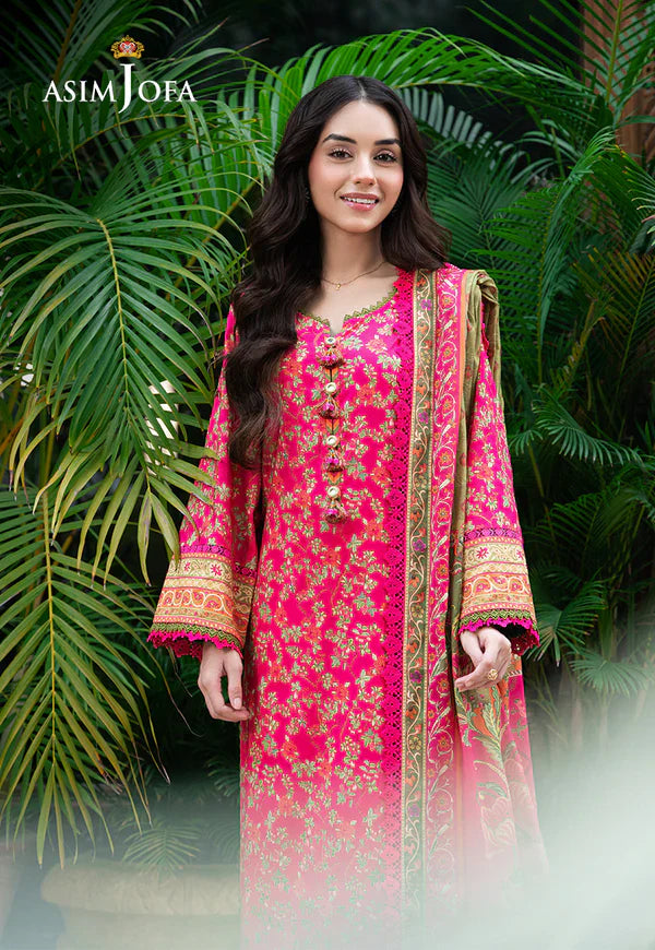 Indulge in gardenlike vibes with this pink ensemble, featuring liberty-style floral foliage prints. The dreamy dupatta enhances the outfit’s charm, adding a touch of elegance to your wardrobe.