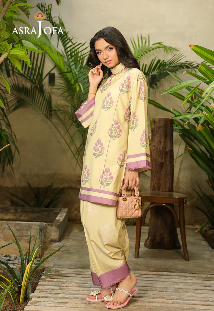Radiating warmth and charm, this yellow ensemble captures the essence of understated elegance. The shirt is adorned with bouquet motifs gracefully scattered across the fabric, adding a touch of floral poetry to its cheerful hue. Paired with yellow trousers featuring a contrasting border, this look is a fresh take on minimalism—bright, refined, and beautifully balanced.